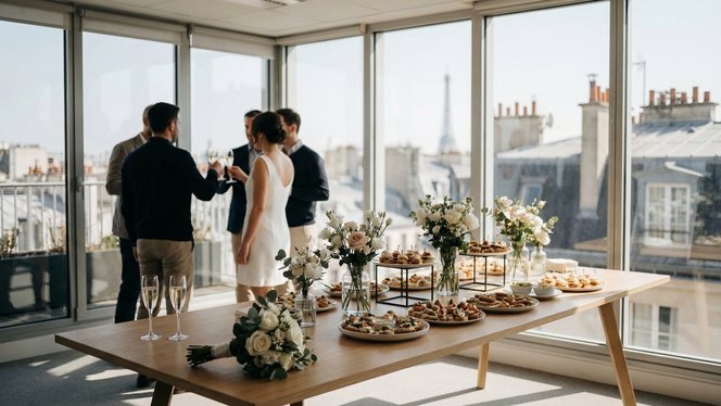 Mariage civil en semaine à Paris, invités pressés et budgets serrés : comment organiser le déjeuner ou buffet qui suit la mairie sans chaos logistique ni effet cheap, avec un traiteur événementiel.