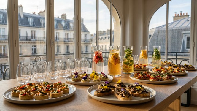 Cocktail de printemps à Paris, buffets beiges et RSE en vitrine : comment briefer un traiteur événementiel pour un cocktail dînatoire léger, cohérent et vraiment convivial.